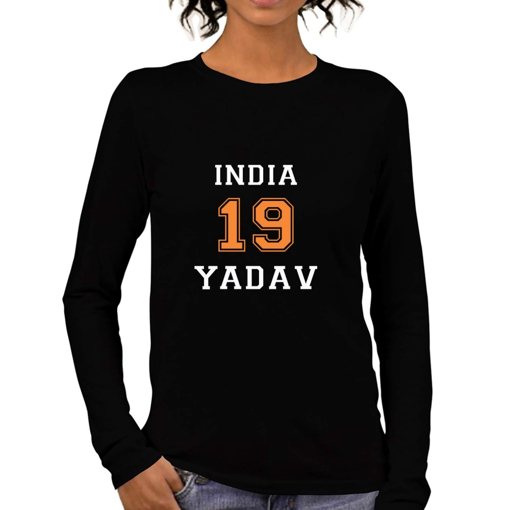 Womens Cotton Jersey No.19 Yadav Printed Round Neck Full Sleeves Black, White & Blue T shirt With 180 GSM Pure Cotton Regular Fit Tshirt.