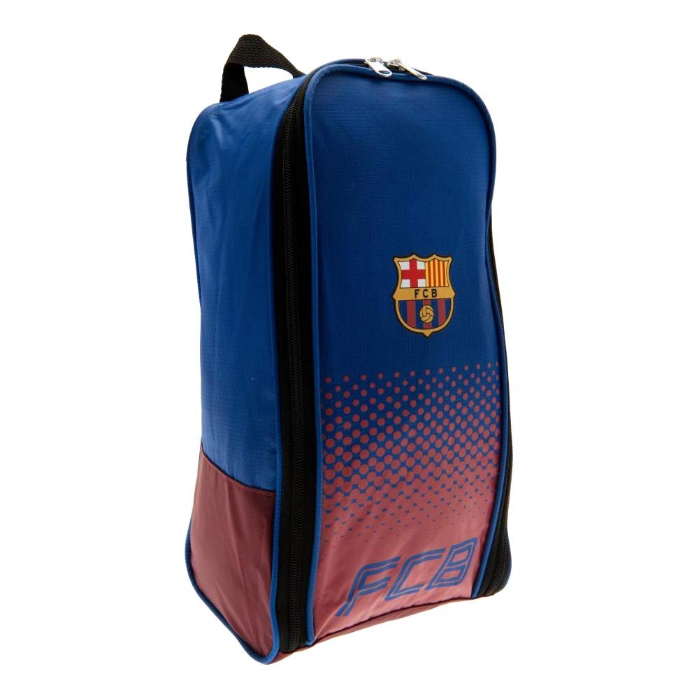 Official Futbol Club Barcelona Licensed Product. Dimensions: Size Approx: 35cm X 18cm X 12cm Features: Nylon Boot Bag, Nylon Zip Opening, Double Nylon Zip Pulls Material: Nylon Contents: 1 Nylon Boot Bag